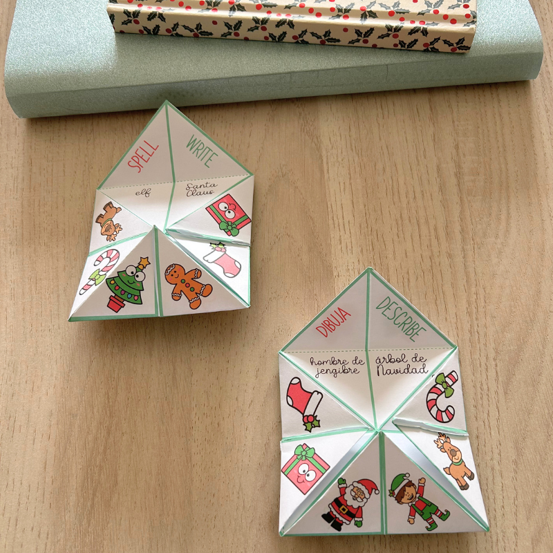 Con este comecocos podrás repasar vocabulario navideño de una manera divertida.