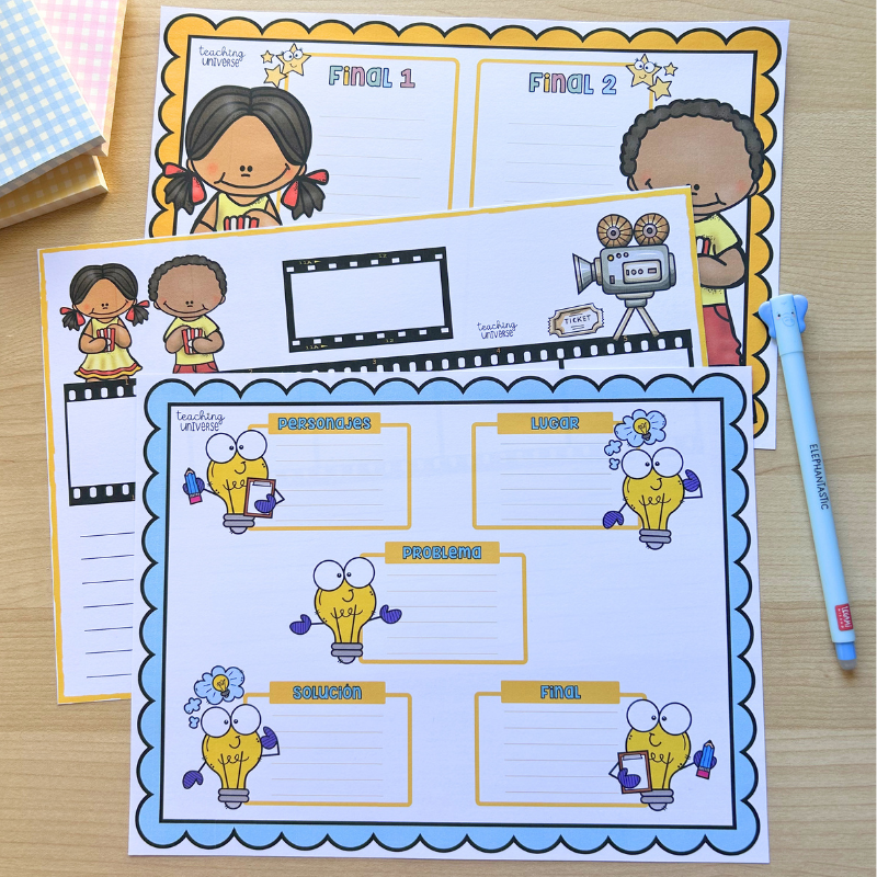 Con estas plantillas, tu alumnado podrá construir su propia historia desde cero, desarrollando: