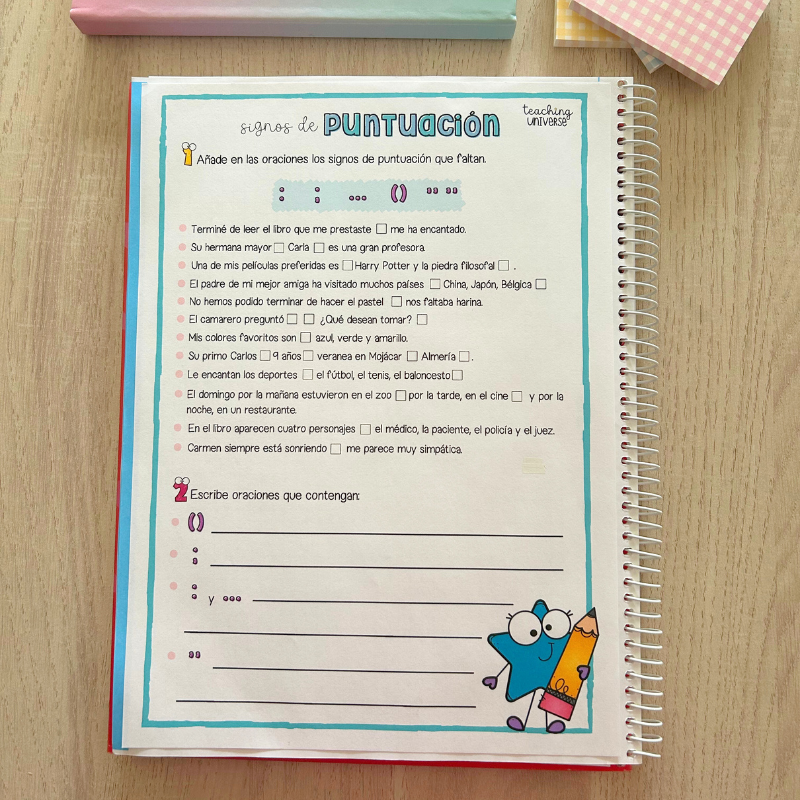 Material educativo diseñado para comprender y practicar los signos de puntuación de manera visual e interactiva. Ideal para primaria, permite que el alumnado refuerce sus habilidades de escritura, mejore la comprensión de la estructura de los textos y aprenda de forma lúdica.
